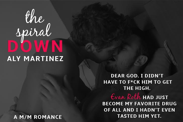 The Spiral Down is Aly Martinez’s first M/M story, and let me tell you, she owned this new genre…OWNED it. The chemistry between Henry and Evan resonates off of the pages, and the passion that ignites with each sexual or loving embrace exemplifies just how good they are together and what could happen between them if Henry stopped worrying about labels and Evan gave in to breaking his rules, knowing that even if he got hurt at least he gave it his all.