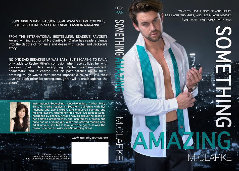International Bestselling, Award-Winning, Author Mary Ting/M. Clarke resides in Southern California with her husband and two children. She enjoys oil painting and making jewelry. Writing her first novel, Crossroads Saga, happened by chance. It was a way to grieve the death of her beloved grandmother, and inspired by a dream she once had as a young girl. When she started reading new adult novels, she fell in love with the genre. It was the reason she had to write one-Something Great.