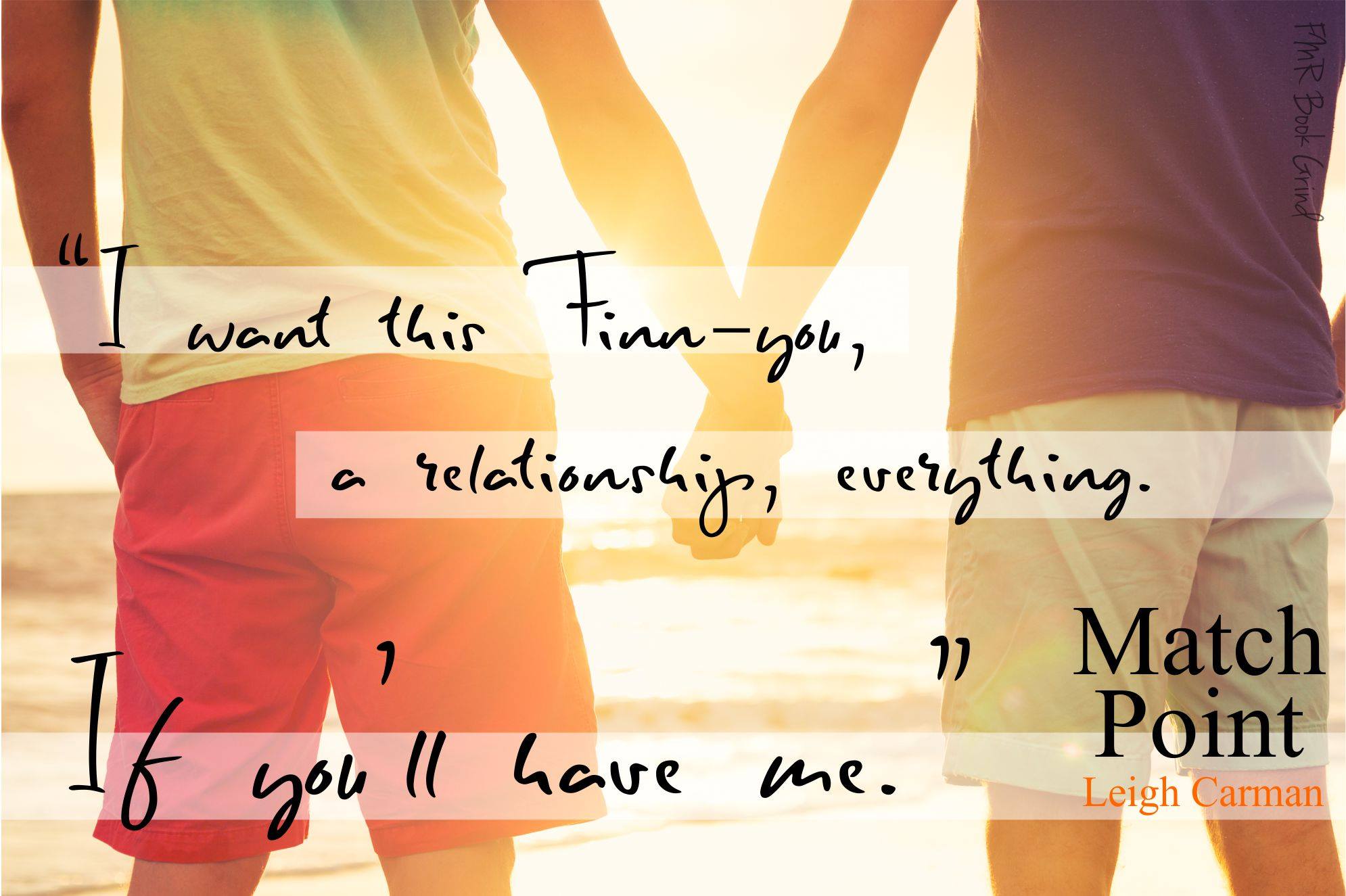I really enjoyed Match Point; it took me a bit to warm up to Finn and realize the reasons behind his attitude, but once it became clear why he created the persona that he did, I felt sorry for him and hoped he would find a way to move on and live fully instead of merely survive and I knew that Dex was going to be the man to give him that chance.