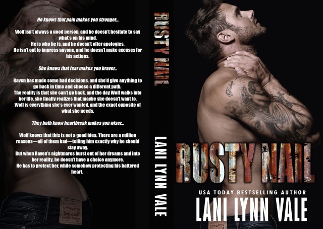 This is the story that Lani Lynn Vale gives her readers in Rusty Nail, and it’s one filled with emotion, drama, and inner turmoil that pushes both Wolf and Raven physically, emotionally, and mentally. Wolf saved Raven from a deplorable, gut-wrenching situation, and she would love to return the favor and help put the light back in his eyes, but in order to do that, she has to truly understand what Wolf wants and needs from her and Wolf has to be willing to give Raven everything in return.