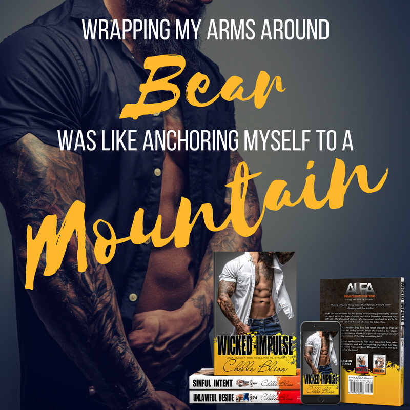 Since meeting Fran in Sinful Intent, I’ve seen her as the hilarious, inappropriate, and a bit nagging mother of Morgan DeLuca and aunt to the Gallo clan. She and her sister-in-law, Maria, love to meddle as well as be a bit too forward in what they choose to share and how they choose to deliver their lessons. But in Wicked Impulse, readers are introduced to a more womanly version of Fran – one who no longer wears track suits as an attempt to keep men away from her…who proves to be quite adventurous in the bedroom with the right partner…who interferes in the lives of the people she loves most in order to give them a chance at a life of love and happiness. All that Fran is, is brought out further by Bear, and together, they heal one another’s past wounds and allow themselves to move forward, knowing that Bear’s impulse to pursue the woman who was supposed to be off-limits has brought them everything they could want and then some.