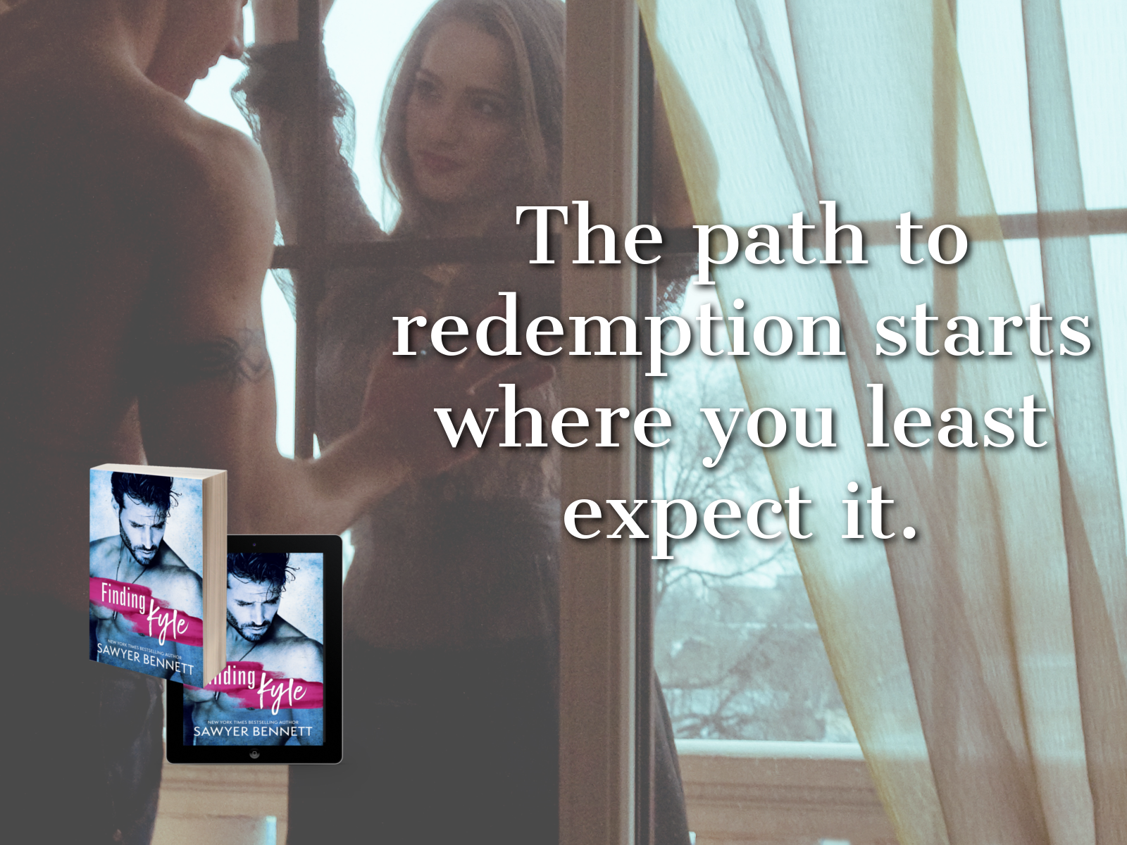 The title for Sawyer Bennett’s newest release, Finding Kyle, has a number of significant connotative meanings for Kyle and Jane’s story, and all of them signify both internal and external issues that Kyle must face and ultimately deal with in productive and secure ways, so he can heal and protect himself from his past acts.