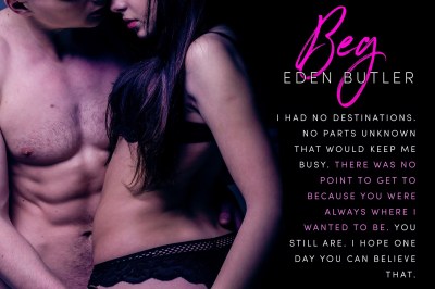 Regardless of the few issues I have with Beg, Eden Butler’s storytelling and character development, once again, showcases her skills at creating emotionally charged plot lines and dynamically flawed characters, and I can’t wait for her next story!