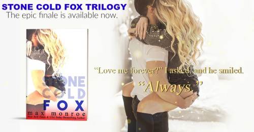 Disclaimer: Max Monroe’s editor recommends readers purchase tissues in bulk prior to reading the deeply emotional and epic finale of the STONE COLD FOX Trilogy. Early readers have complained of the following symptoms: sobbing, happy tears, overwhelming elation, book hangovers, and the urge to re-read the entire STONE COLD FOX Trilogy after finishing FOX.