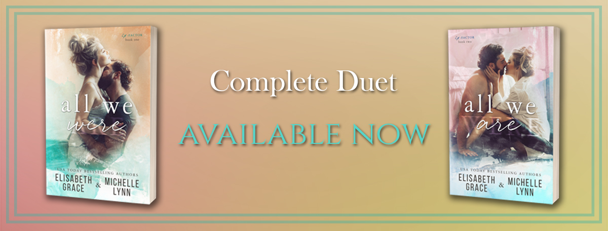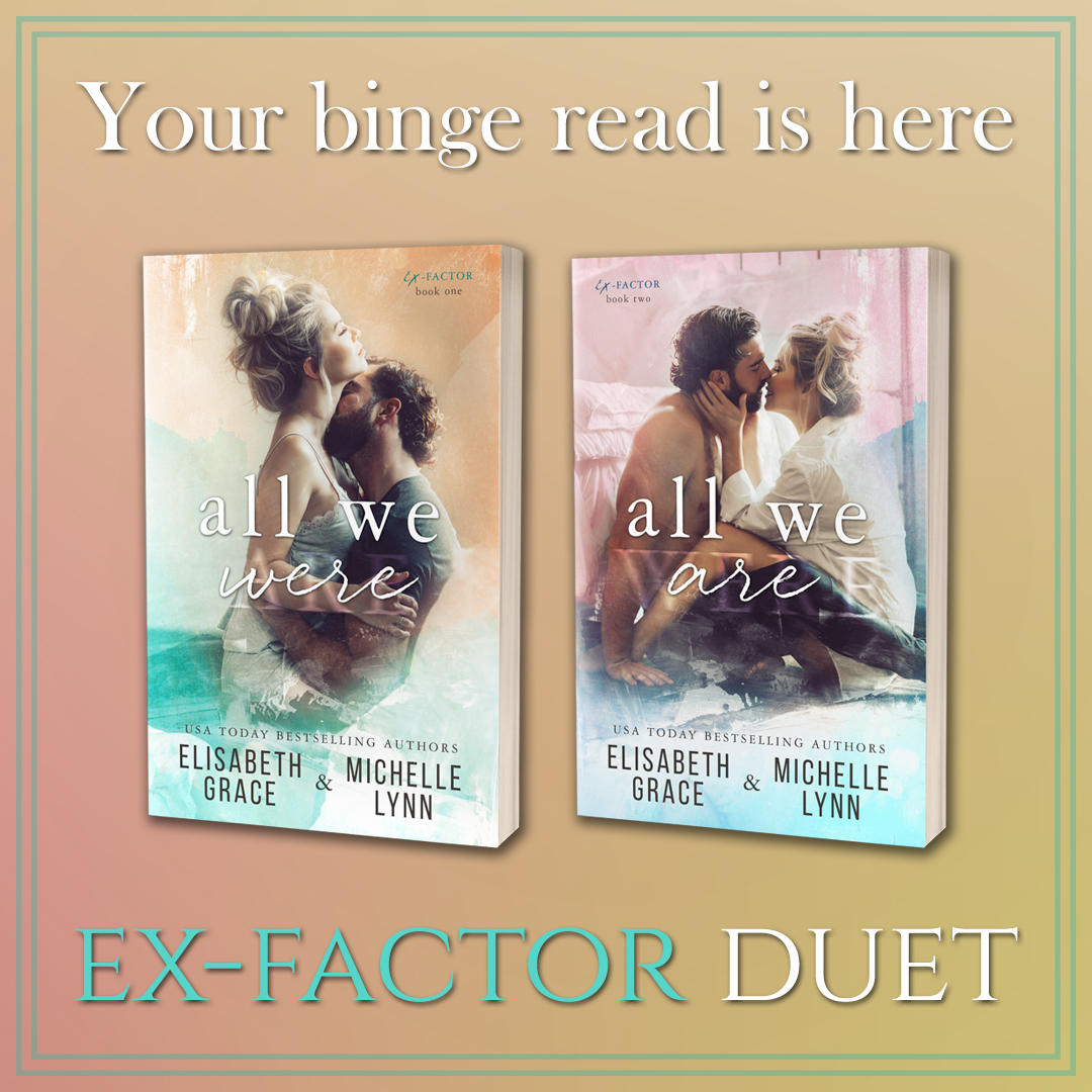 The Ex-Factor duet is an emotional journey for everyone involved – it’s one that has no easy answers and one that takes time to get everything sorted due to how deep the characters’ wounds go, both self-inflicted and ones due to other people’s influence and neglect. There’s nothing easy about Jimmy and Lilah’s story, but I think that’s why it makes Lilah getting clean and finding her own way while Jimmy works to make a name for himself without being in Lilah’s shadow is essential for their growth and progress, and I can’t see it written any other way than how Michelle Lynn and Elisabeth Grace penned it, even if I was a nervous wreck for most of book two;)