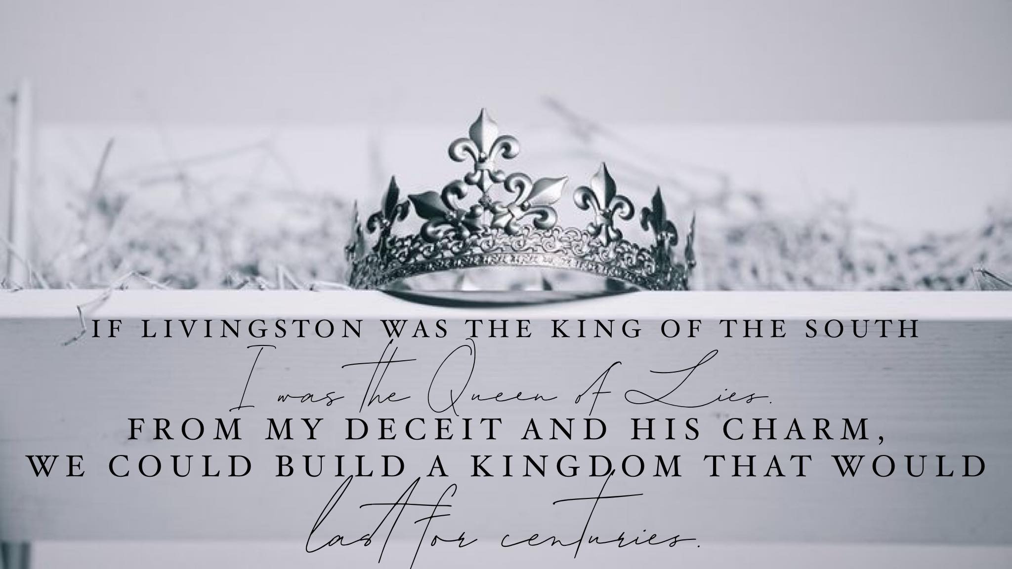 “If Livingston was the King of the South, I was the Queen of Lies. From my deceit and his charm, we could build a kingdom that could last for centuries.”
